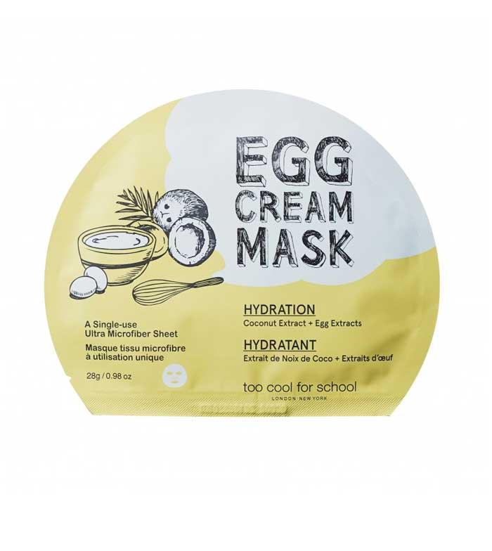 Le Egg Cream Mask Hydration de Too cool for school est un masque visage hautement nourrissant formulé à base d'extrait d'œuf, d'eau de coco, de niacinamide et d'extraits botaniques.