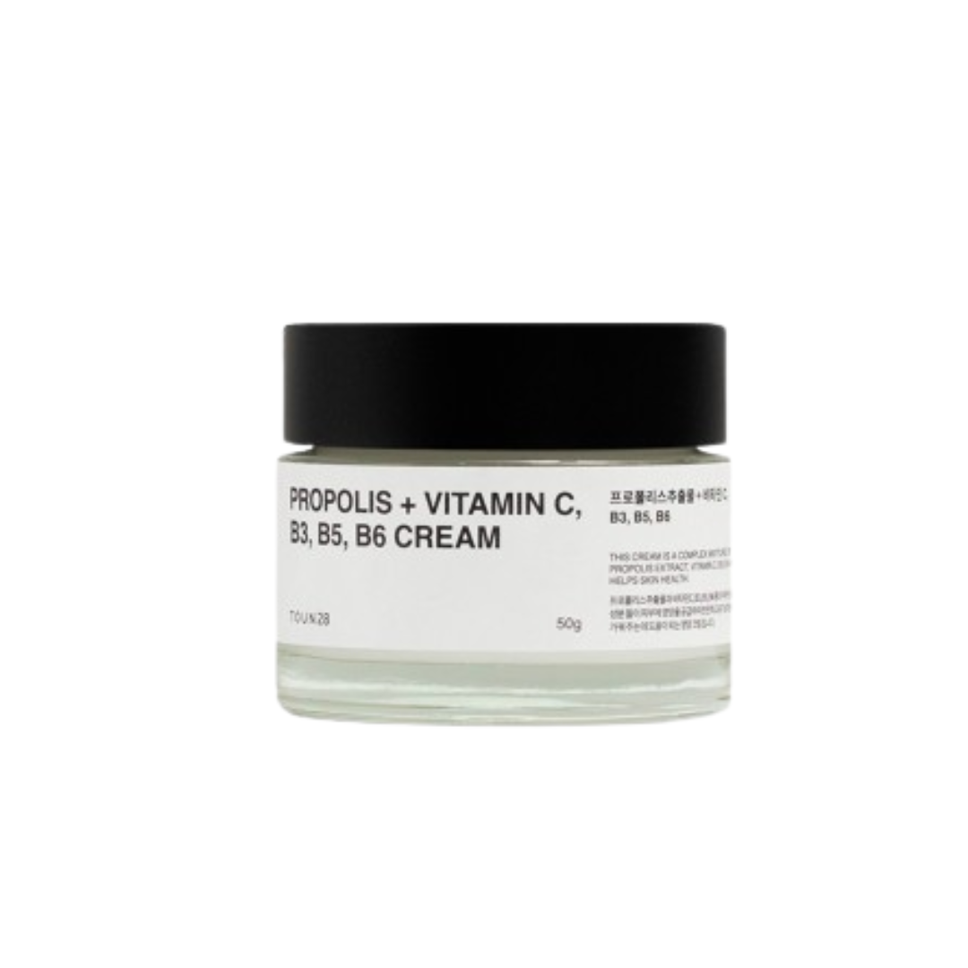 Propolis Vitamin C, B3, B5, B6 Cream de Toun28 est une crème visage multivitaminée qui associe la propolis et un complexe de vitamines essentielles pour revitaliser, hydrater et protéger la peau.
