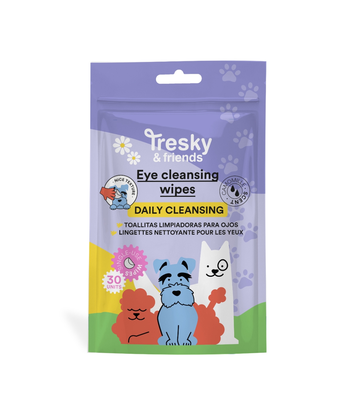 Les lingettes nettoyantes pour les yeux TRESKY & FRIENDS sont spécialement conçues pour l'hygiène quotidienne du contour des yeux des chiens et des chats.