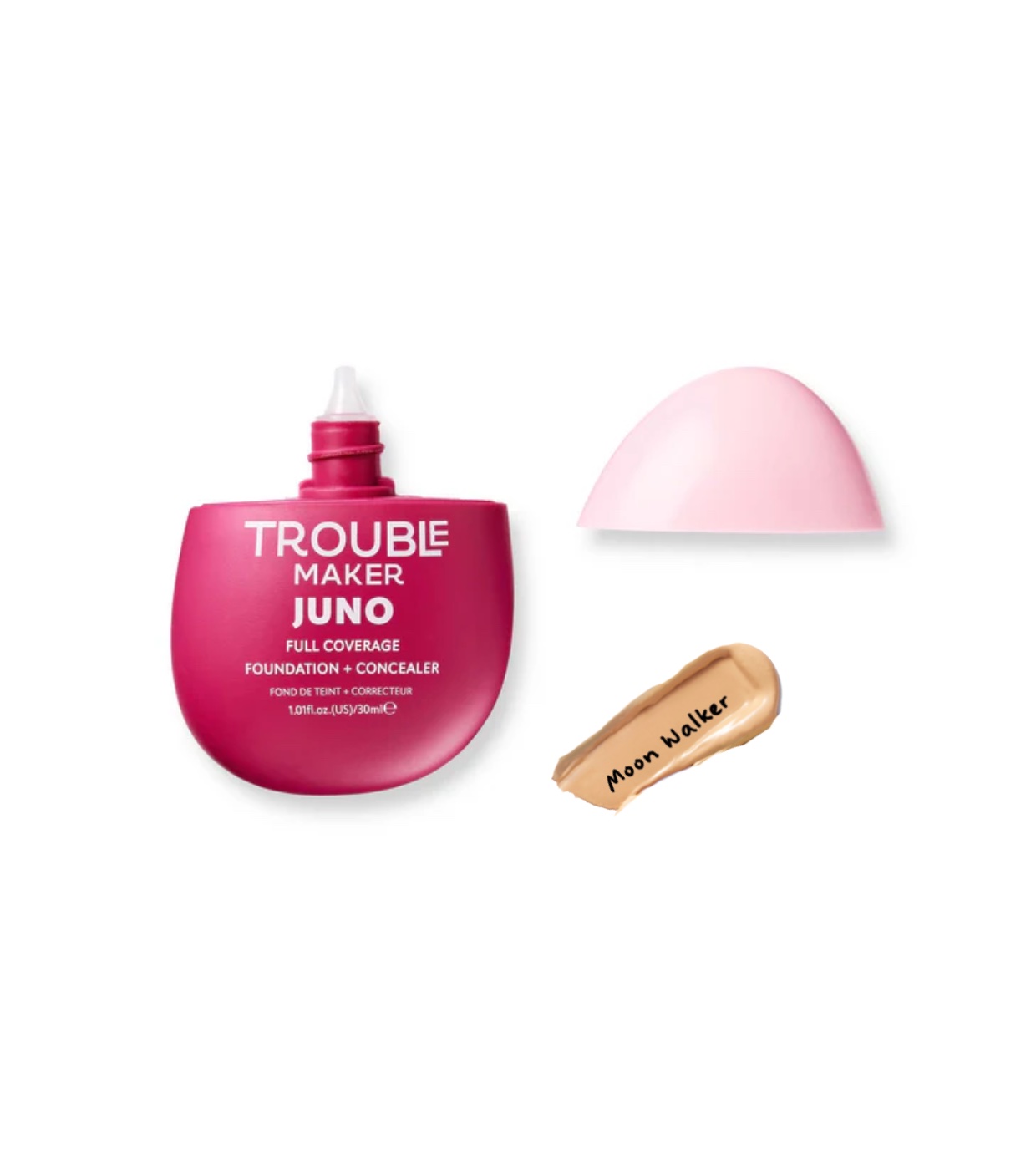 Le fond de teint mat à couvrance complète Trouble Maker Juno est le fond de teint ultime pour un look longue tenue et uniforme avec un fini mat doux.