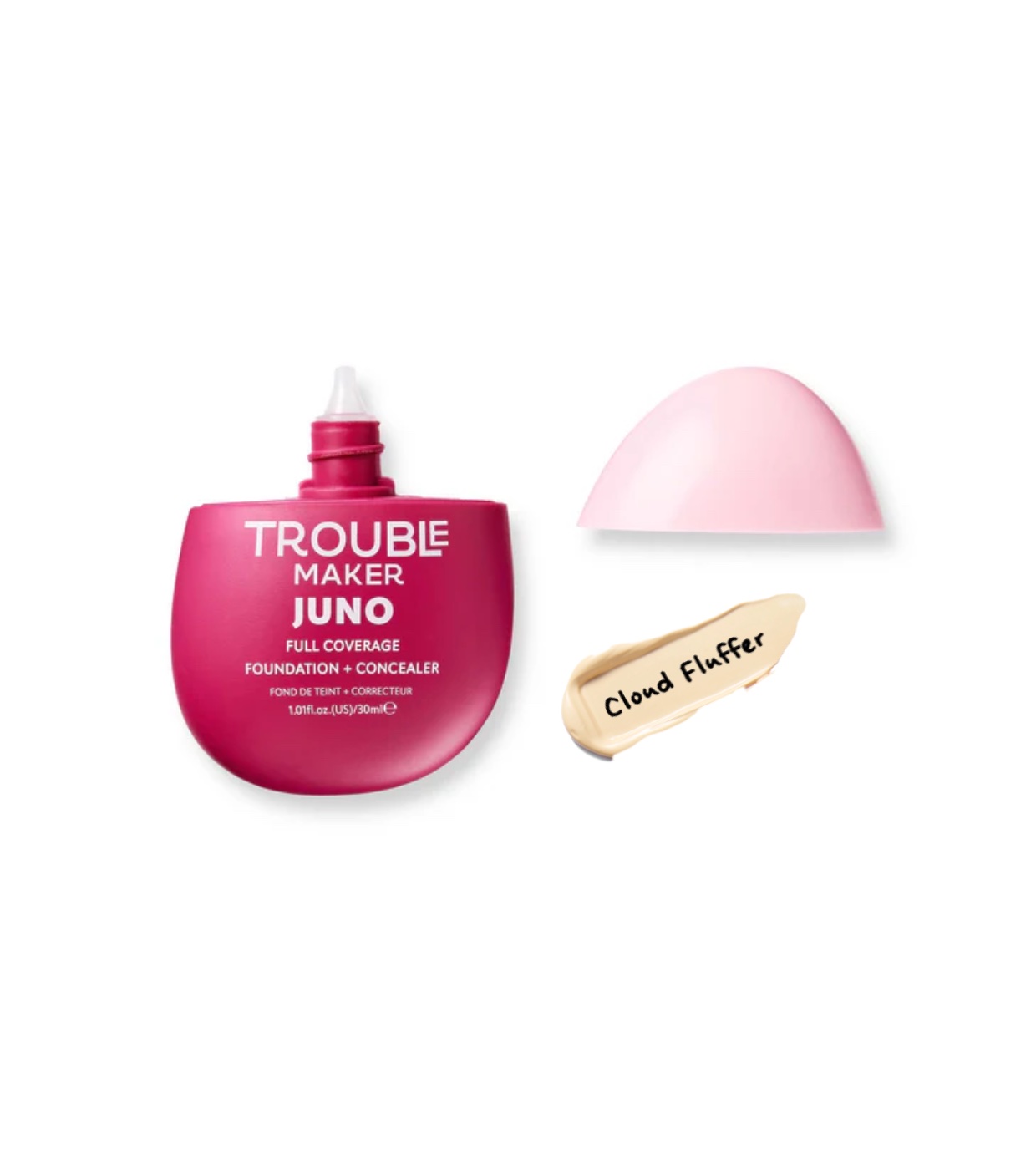 Le fond de teint mat à couvrance complète Trouble Maker Juno est le fond de teint ultime pour un look longue tenue et uniforme avec un fini mat doux.