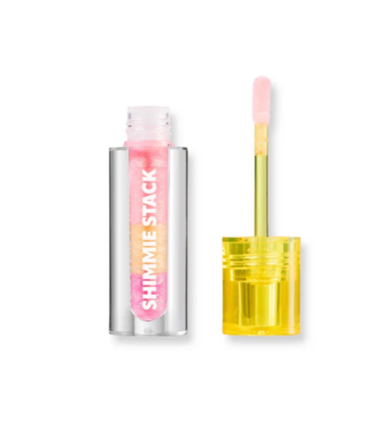 Le gloss Shimmie Stack de Trouble Maker,, un trio de teintes scintillantes conçues pour multiplier l'éclat de vos lèvres.