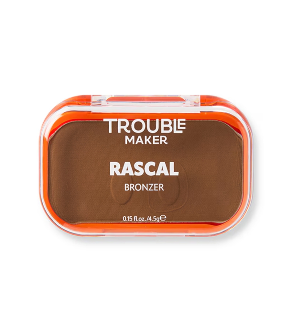 La poudre bronzante Trouble Maker Rascal offre une texture crémeuse et une couleur modulable avec une pigmentation impressionnante, idéale pour ajouter de la chaleur naturelle et un fini radieux au visage.