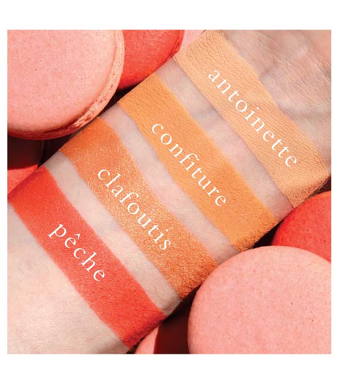 Shades 1 (Antoinette), 2 (Confiture): Talc, Mica, Octyldodecyl Stearoyl Stearate, Zinc Stearate. Shade 3 (Clafoutis): Mica, Octyldodecyl Stearoyl Stearate, Talc, Calcium Sodium Borosilicate, Zinc Stearate, Silica. Shade 4 (Pêche): Mica, Talc, Octyldodecyl Stearoyl Stearate, Calcium Sodium Borosilicate, Zinc Stearate. (May Contain +/- Iron Oxides CI 77491/ 77492/ 77499, Titanium Dioxide CI 77891, Yellow 5 Lake CI 19140, Tin Oxide, Rosin, Red 6 Lake CI 15850, Red 40 Lake CI 16035, Barium Sulfate CI 77120, Sodium Benzoate, Potassium Sorbate).