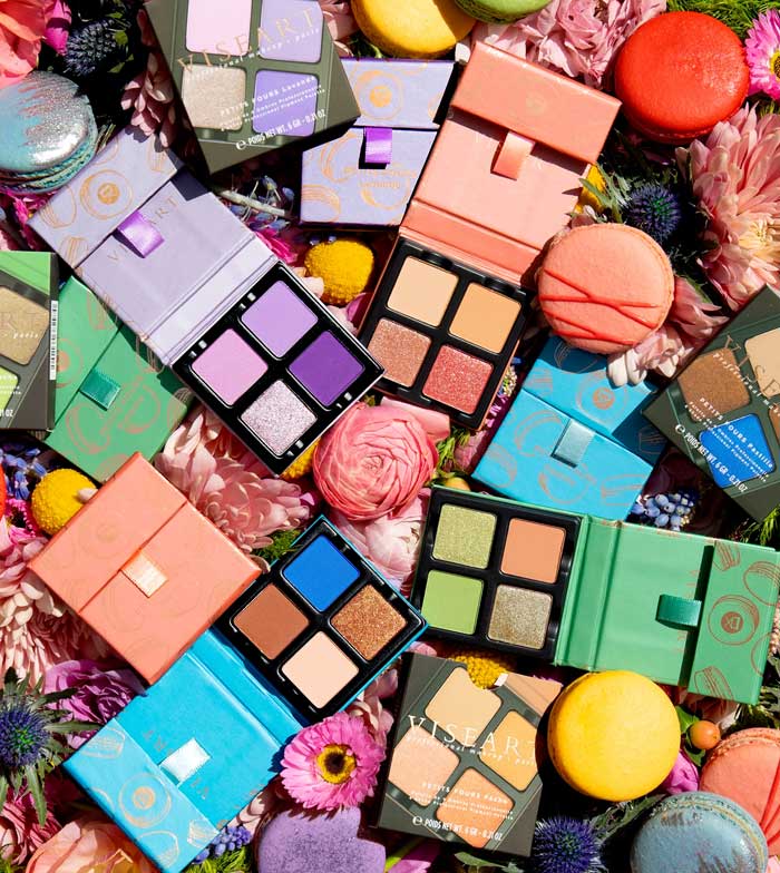 La palette d'ombres à paupières Petits Fours de Viseart contient 4 superbes teintes hyper pigmentées pouvant être mélangées.