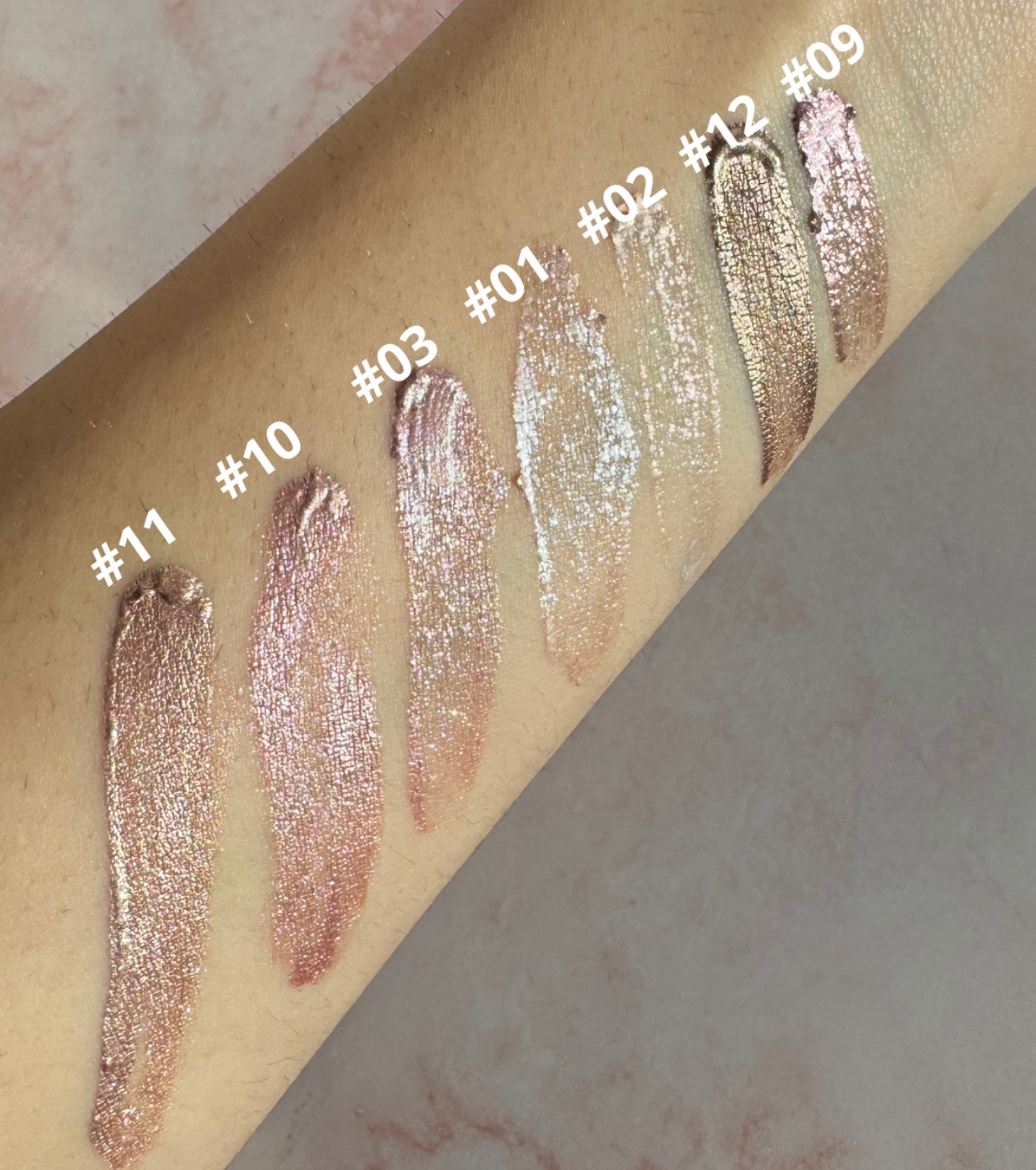 Aqua, synthetic fluorphlogopite, calcium sodium borosilicate, mica, butylene glycol, ammonium acryloyldimethyltaurate/Vp copolymer, 1,2-hexanediol, hydroxyacetophenone, tetrasodium edta, tin oxide, Ci 77891, Ci 77491.