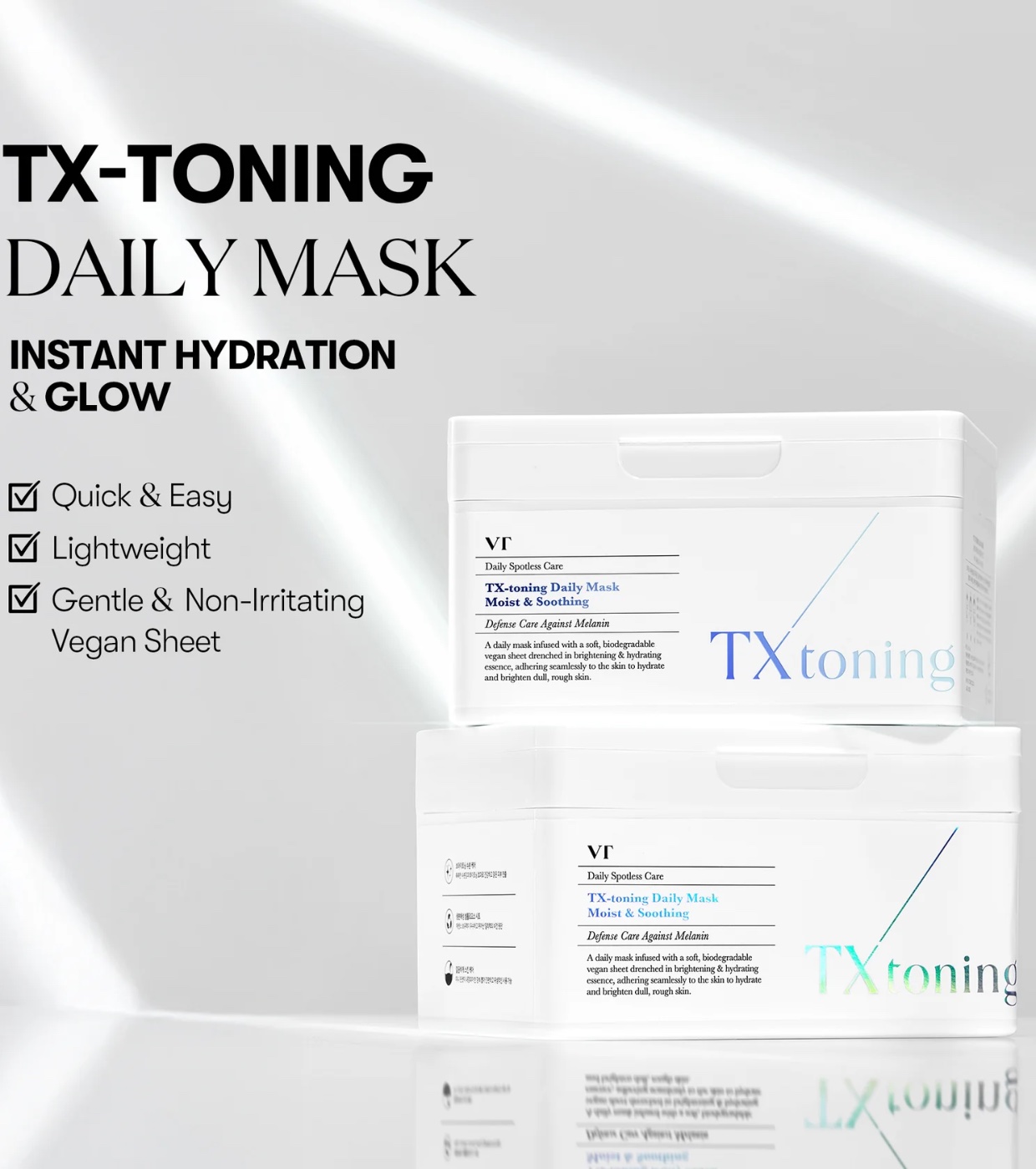 TX Toning Daily Hydrating Mask VT Cosmetics est un masque facial quotidien conçu pour hydrater en profondeur, apaiser et améliorer l'apparence des imperfections, des marques d'acné et de la peau terne, même sur les peaux sensibles.