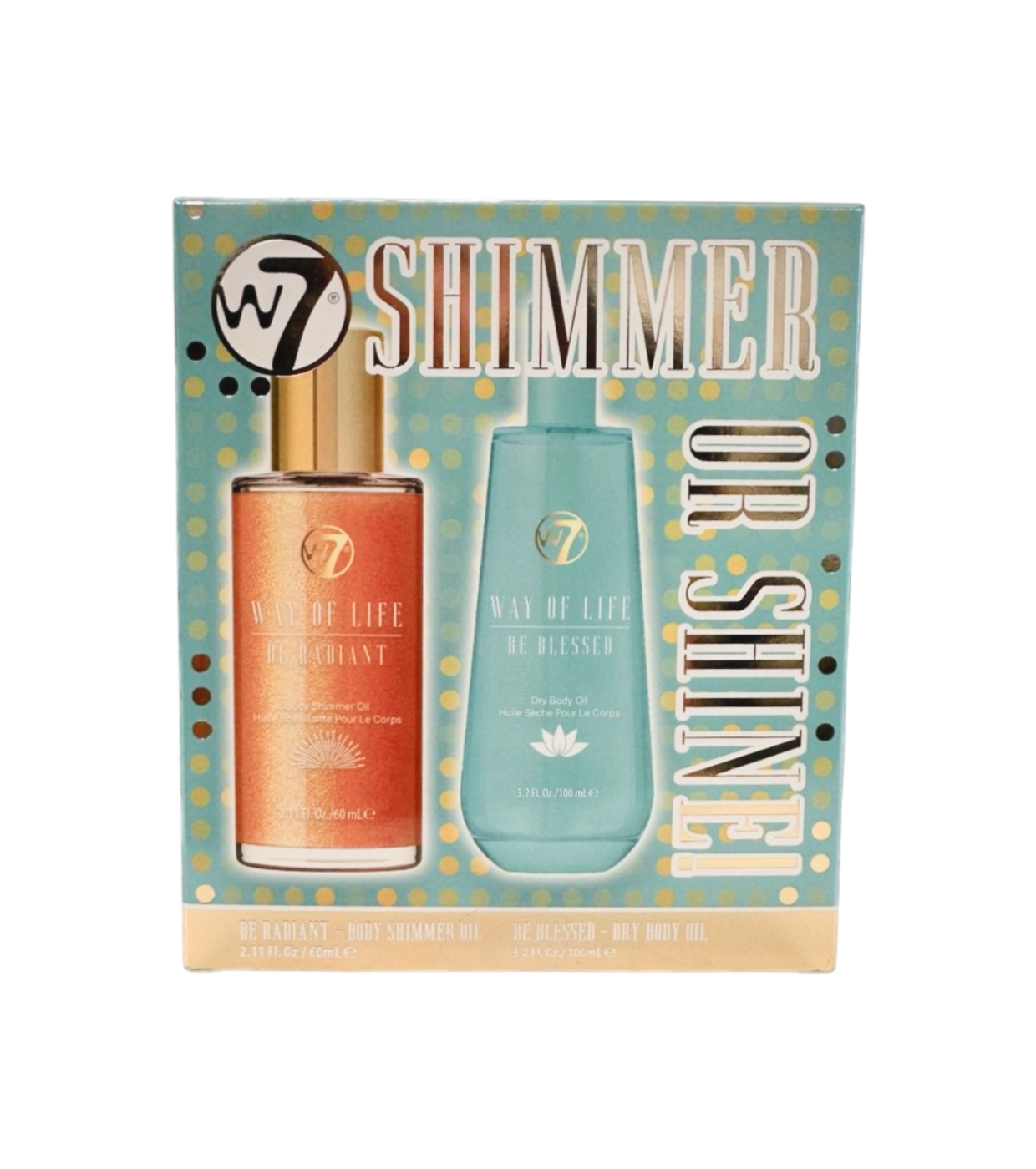 Obtenez une peau radieuse et nourrie avec le W7 Shimmer or Shine Set, un duo d'huiles corporelles conçues pour hydrater et sublimer votre beauté naturelle.