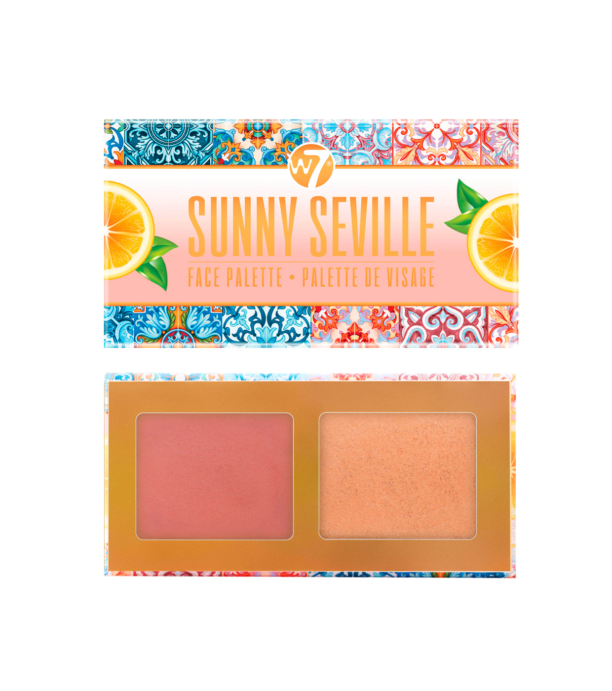 La palette pour le visage W7 Sunny Seville est conçue pour rehausser votre luminosité naturelle avec une touche de style méditerranéen.