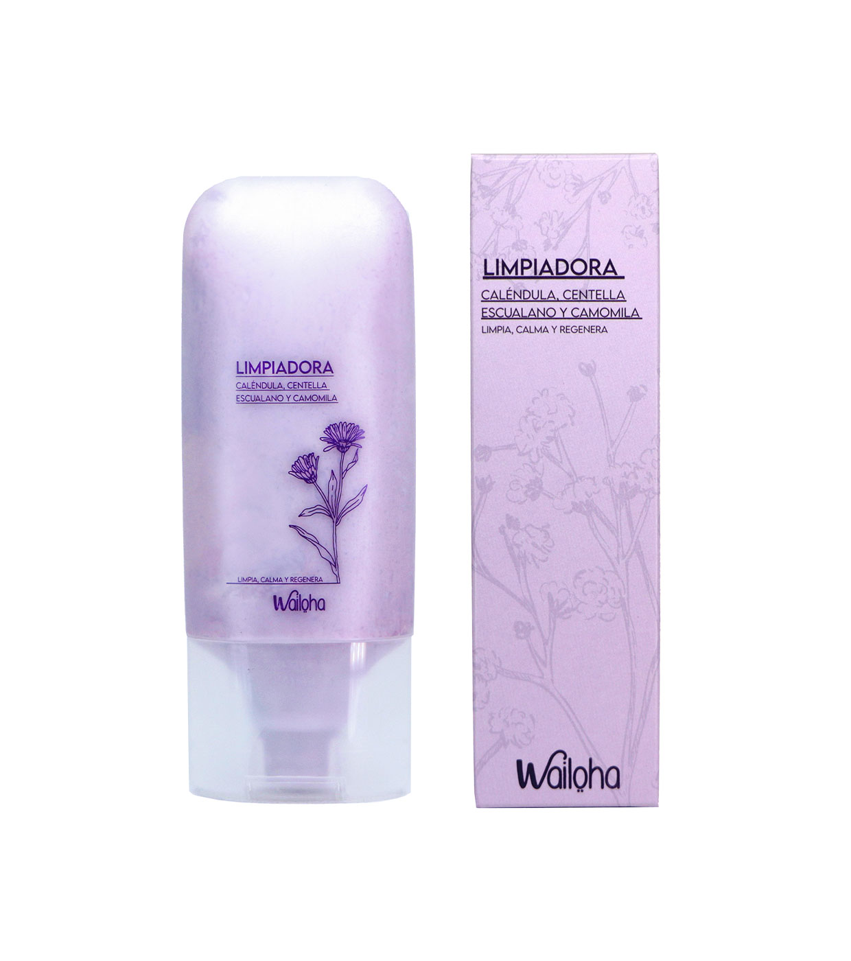 Découvrez les soins indulgents du Nettoyant Apaisant et Régénérant de Wailoha, une expérience de nettoyage du visage unique enrichie de calendula, de gotu kola, de squalane, de camomille et de boswellia serrata.