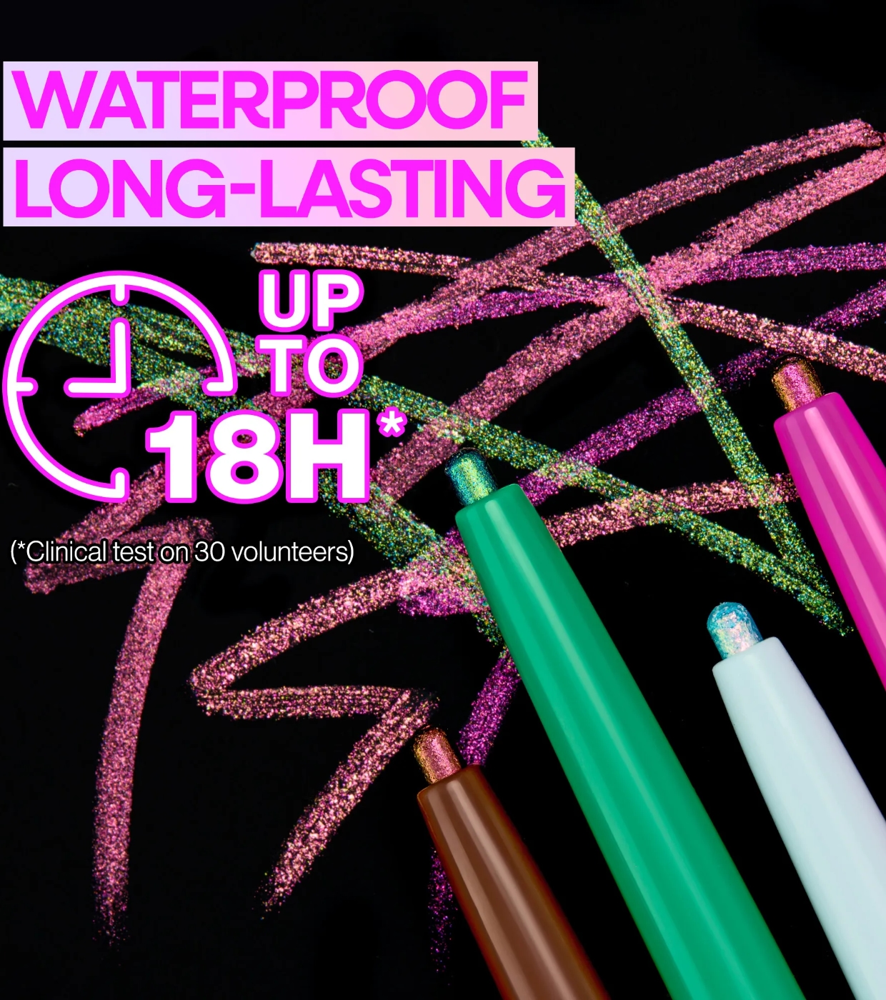 Disponibles en 4 teintes saisissantes, ces eye-liners rétractables n'ont pas besoin de taille-crayon et glissent en douceur pour une application sans effort.