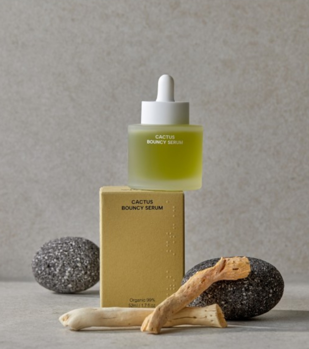 Inspiré par la résilience du cactus du désert, le Bouncy Serum de Whamisa est formulé avec 99 % d'extrait de tige de cactus pur, une source naturelle de mucilage riche en acides gras essentiels, 18 acides aminés, 14 vitamines et 12 minéraux.