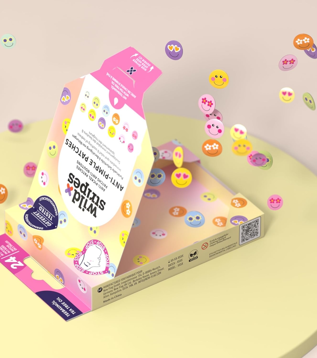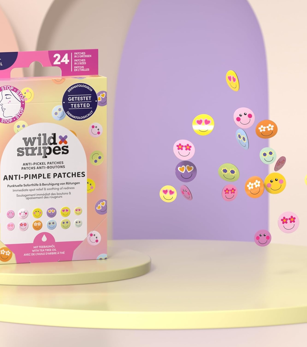 Dites adieu aux boutons avec style grâce aux patchs anti-boutons Wild Stripes , conçu pour apaiser, protéger et favoriser la récupération de la peau.