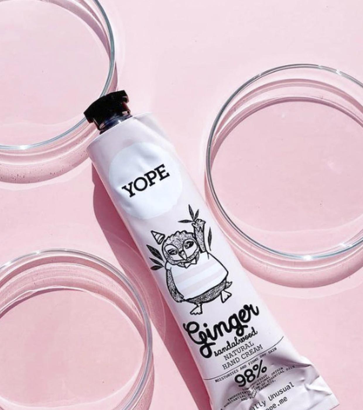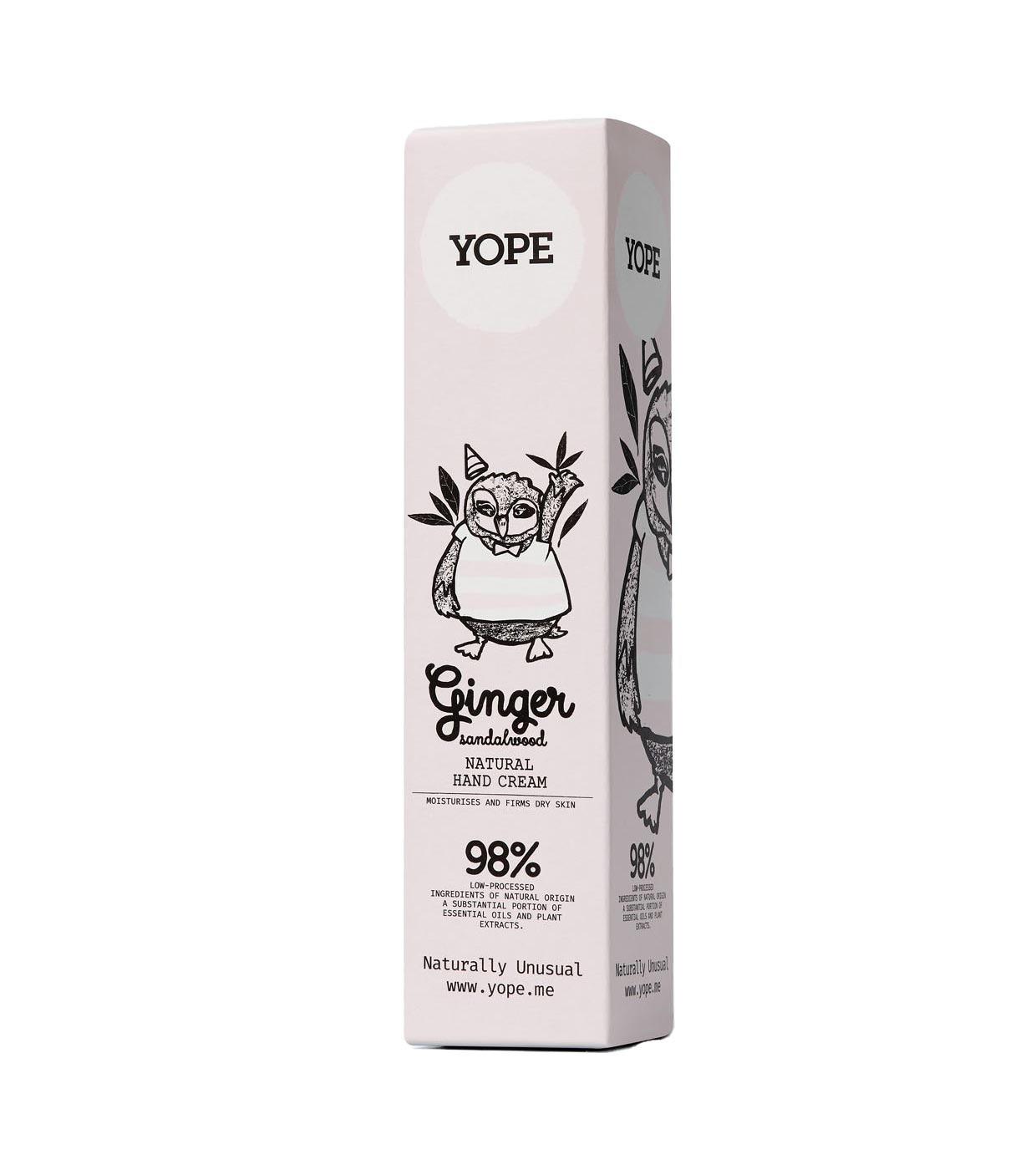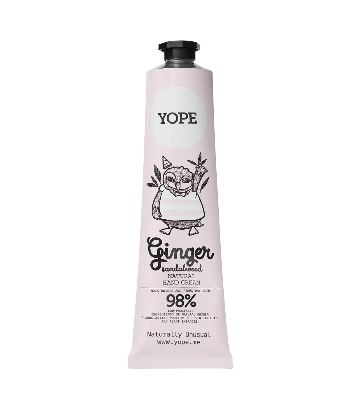 Yope La crème pour les mains naturelle au gingembre et au bois de santal apaise rapidement la peau qui a besoin d'hydratation et lui redonne son élasticité.