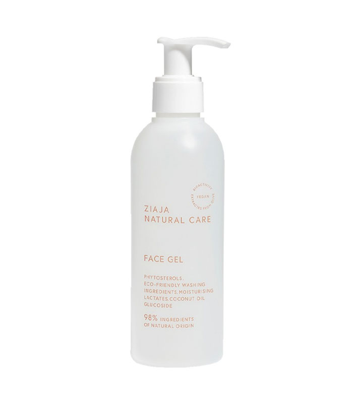 Ce gel nettoyant pour le visage Ziaja contient une base d'ingrédients nettoyants.