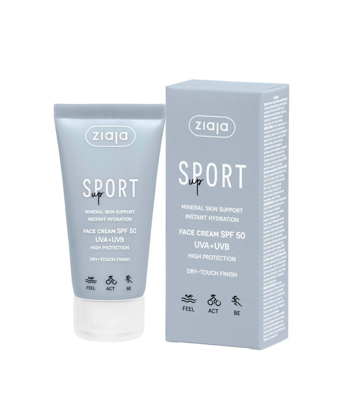 Ziaja Sport La crème légère pour le visage avec SPF 50 offre une hydratation instantanée et une protection solaire à large spectre, protégeant votre peau des UVA, UVB et de la lumière bleue (HEV) émises par les appareils électroniques.