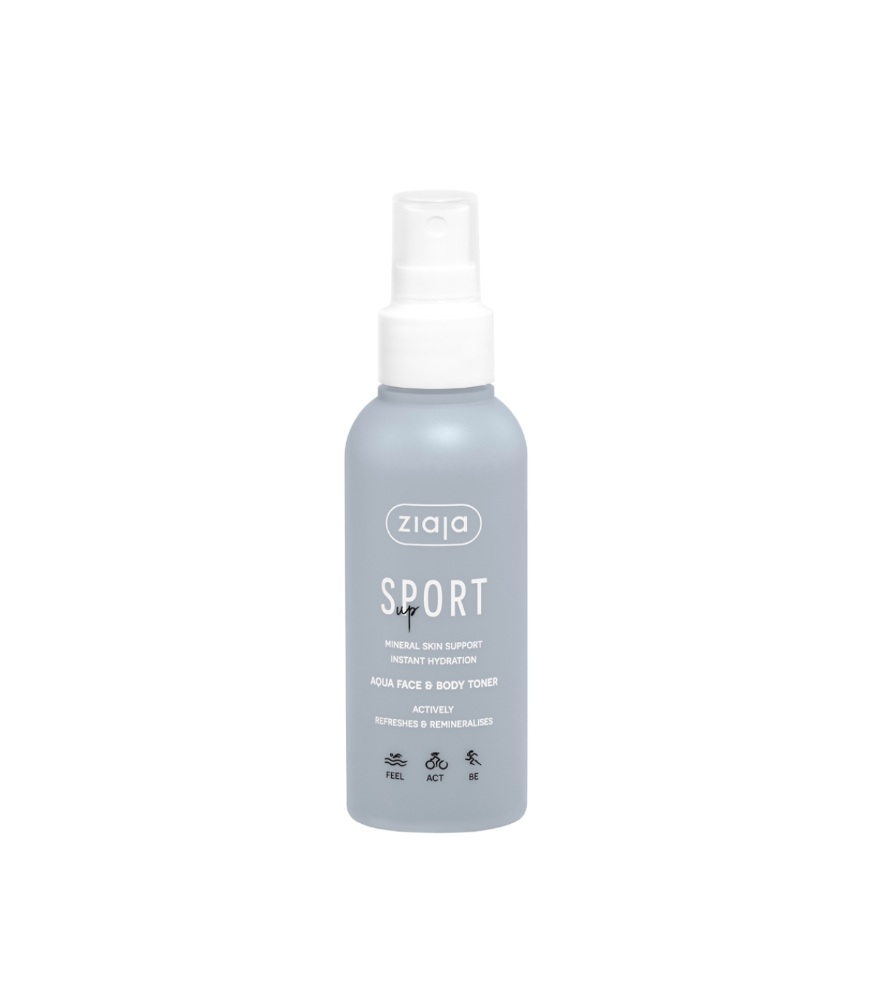 Le tonique visage et corps Ziaja Sport offre une hydratation immédiate et durable jusqu'à 24 heures en une seule application.